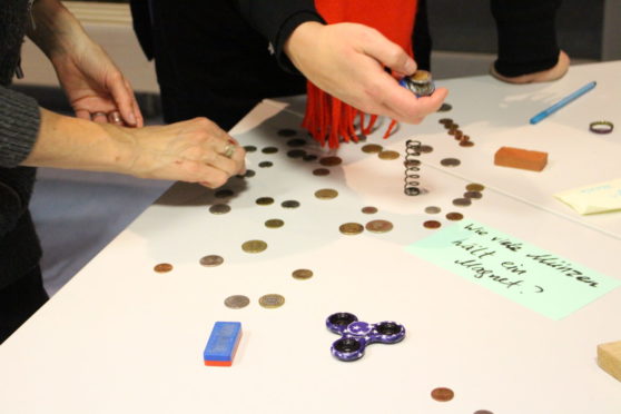 Baustein 1 „Workshop zum entdeckenden Lernen“: Die Teilnehmenden durchleben und reflektieren selbst die verschiedenen Phasen des entdeckenden Lernens.
