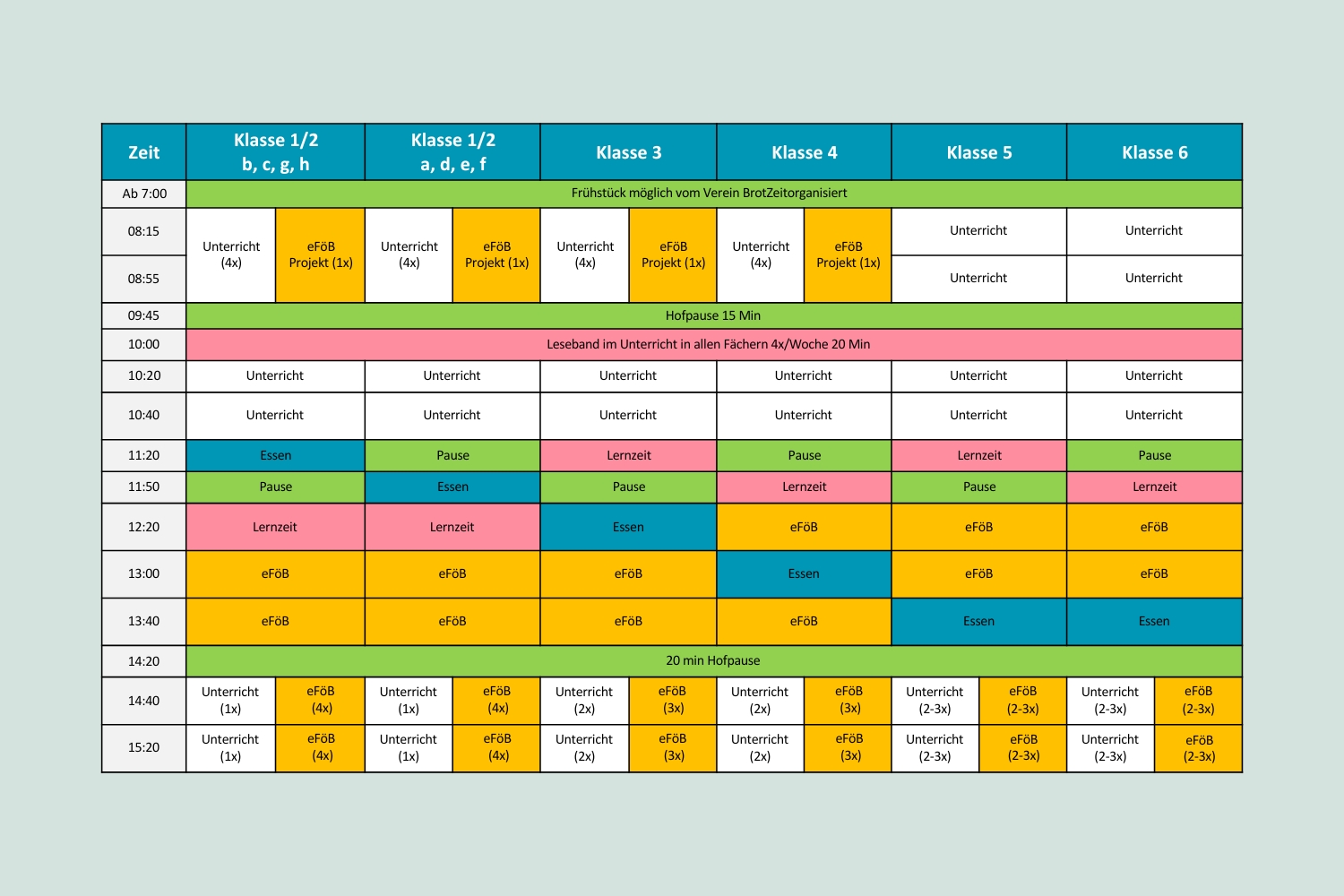 Dabei war der erste Versuch, eine Rhythmisierung an der Schule einzuführen, „kläglich gescheitert“, wie Sandra Schweigert erzählt. Die Idee dazu kam auf, als die Siegerlandschule 2008 zu einer gebundenen Ganztagsschule wurde. Damals änderte sich im Stundenplan erstmal wenig: vormittags fand der Unterricht statt, nachmittags war Betreuung. Doch das stellte sich in vieler Hinsicht als problematisch heraus. Zum einen waren die Schüler:innen mit dem geballten Unterricht am Vormittag überfordert. Zum anderen gab es zunehmend Unzufriedenheit im Erzieher:innen-Team, das am Nachmittag allein, ohne die Lehrkräfte die gesamte Schülerschaft in den Klassenräumen betreute.